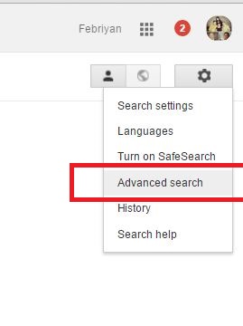 3. Klik Pengaturan (Setting) yang ada di kiri atas dan pilih advance search